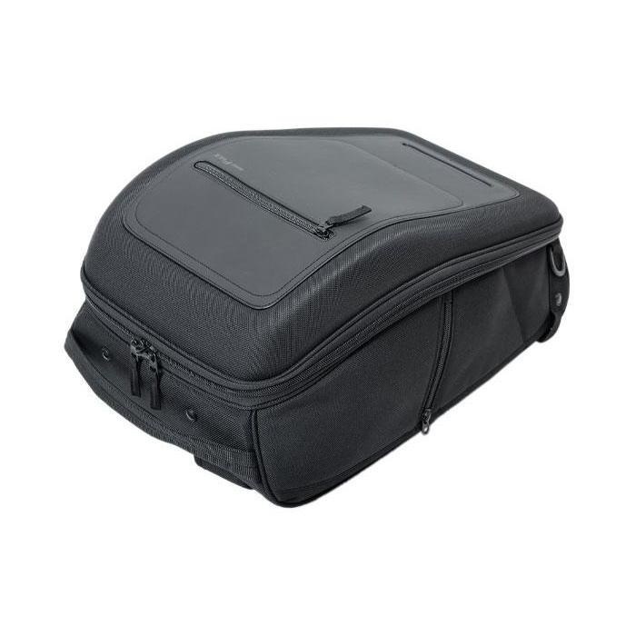 ファスナー全開時の荷物落下を防ぐマチ付き。シートバッグとして使用する時に荷物の出し入れがしやすいように、分離式を採用しました。