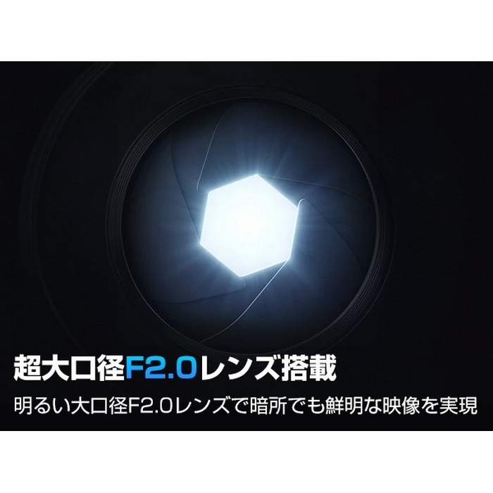 ■122度の超広角レンズとF値2.0の大口径レンズの組み合わせで広範囲の画像を記録することができます。