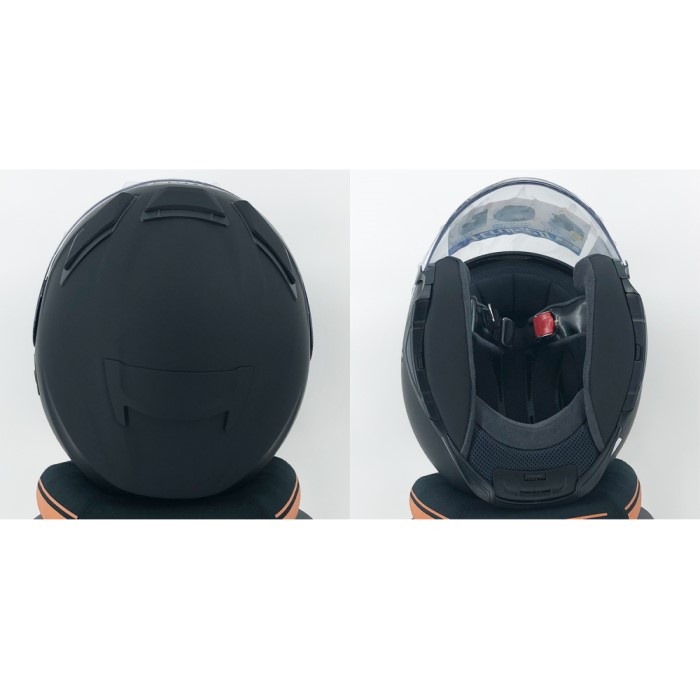 従来モデルの端正でシンプルなデザインから、J-CruiseⅡではよりモダンで洗練されたイメージのシェルデザインを追求。サンバイザー操作機構の見直しなど、詳細まで検証し、従来モデルよりコンパクトなシェルを実現しました。また、後頭部の特徴的な形状は空力性能を追求した結果のデザインであり、シェル形状がスポイラーとして機能するエアロデバイスです。