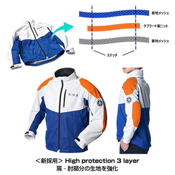 転倒時、擦れることが多い肩・肘部分にケブラー製ニットを挟みこむことで生地の強度を補い、破損を防止します。