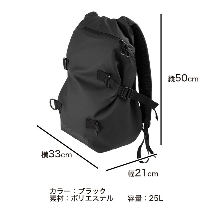 ヘルメットバッグとしても使える、たっぷり容量25L。