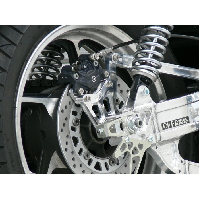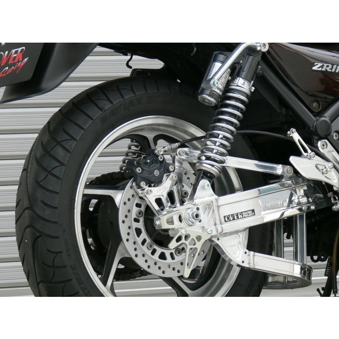 ・純正スイングアーム、OVER製スイングアーム対応(キャリパーを上側に取り付ける場合)。