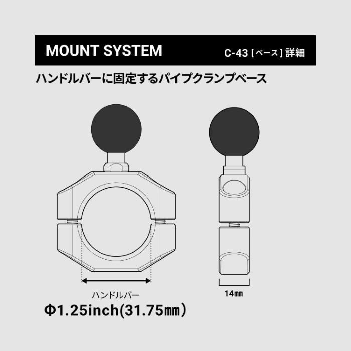 C-43 パイプクランプベース φ1.25インチ (31.75mm)