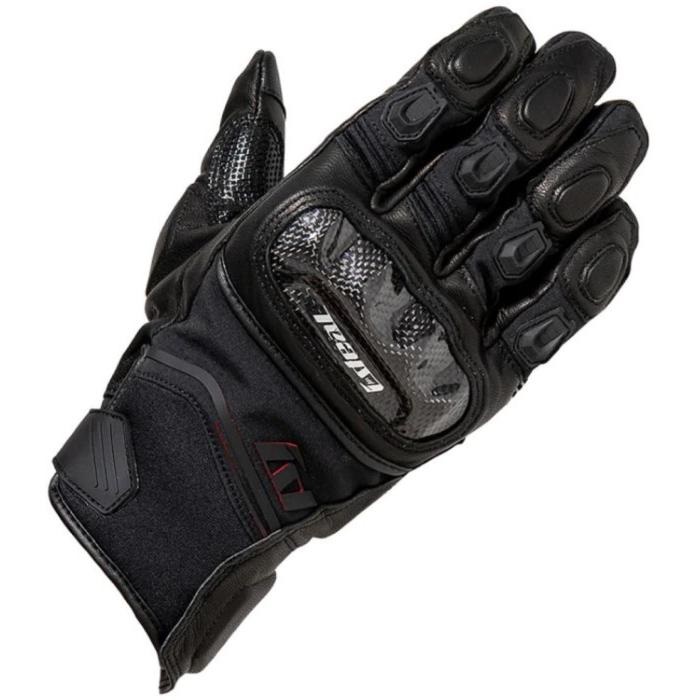 甲側のカーボンナックルプロテクターは、指の動きを妨げないフロート構造。掌側にもカーボンプロテクターを採用し、安全性を高めています。