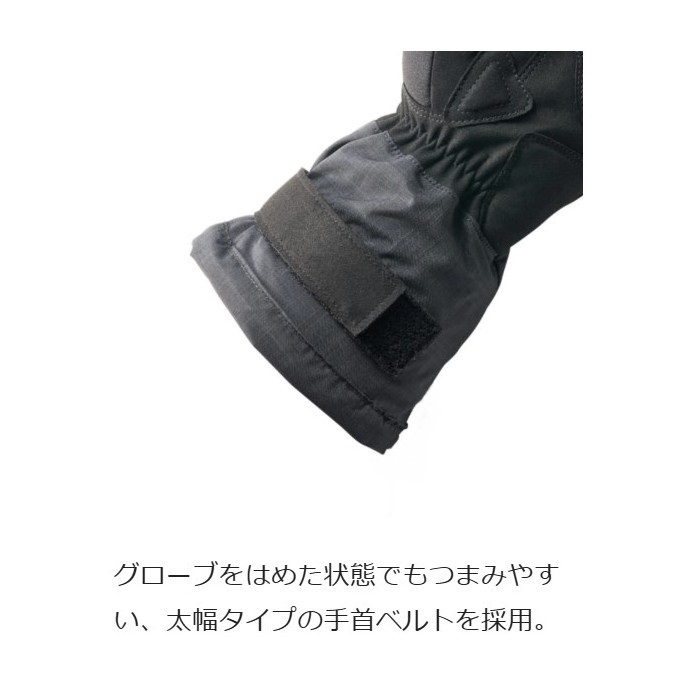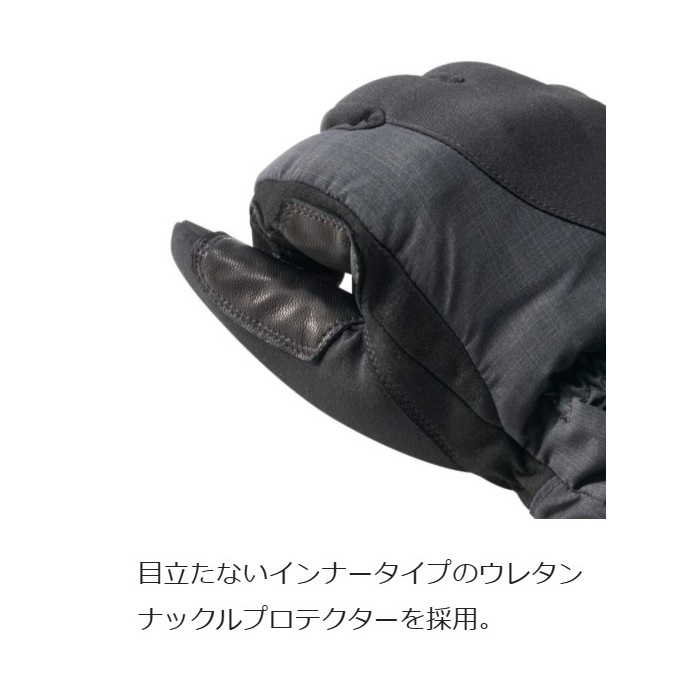 ライディング用途に加え、寒い季節のアウトドアレジャーや街中でも使いやすい、シックでカジュアルなデザインが特徴です。