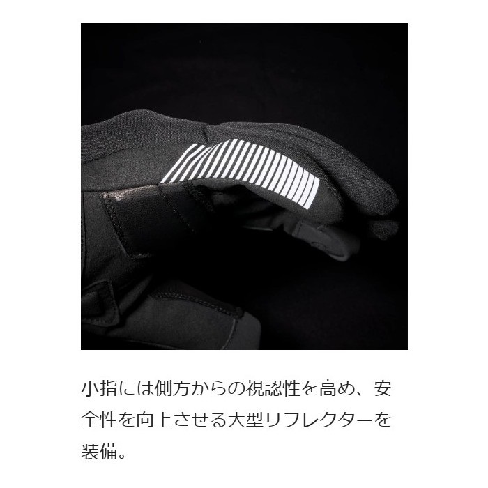 小指側面にリフレクターを装備することで視認性を高め、ライダーの安全性を向上させました。