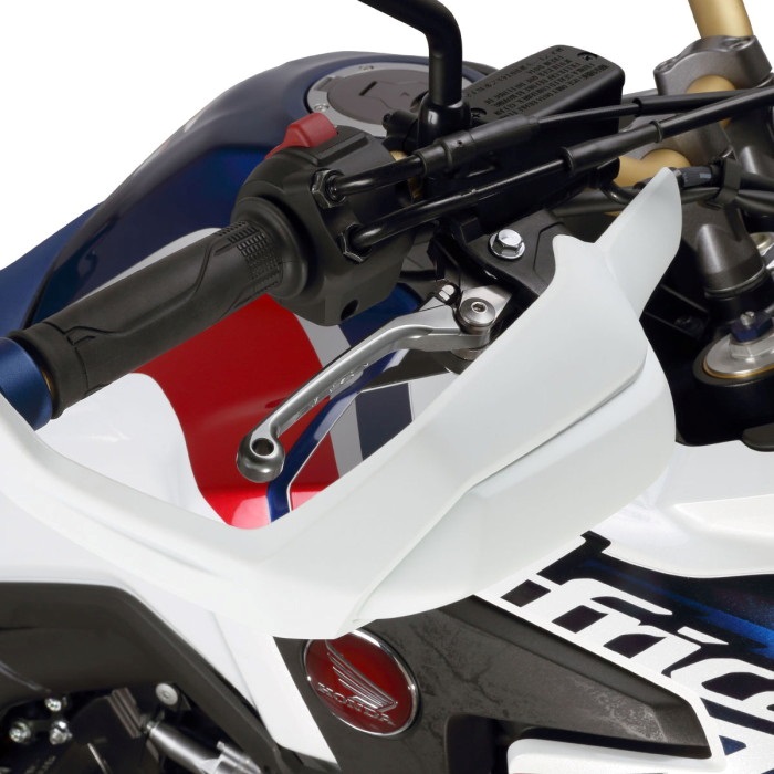 また、転倒後すぐに再スタートできるスプリング内蔵による自動レバー復帰システムを採用。高強度アルミ合金を使用し、アルマイト表面処理を施す。