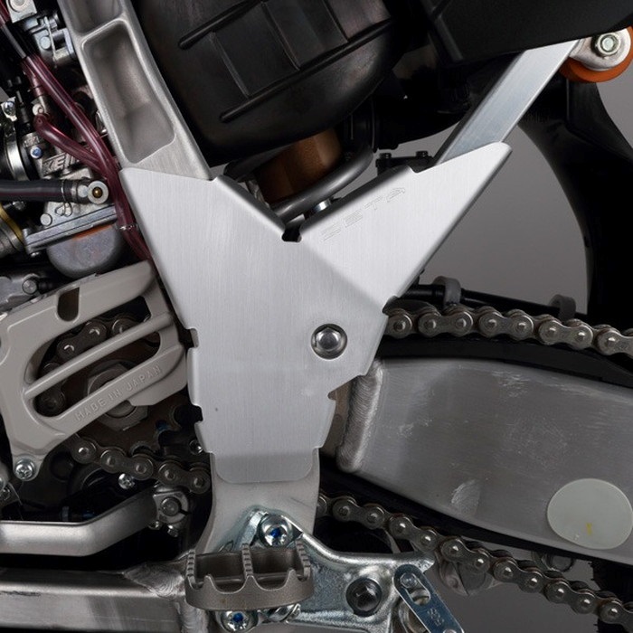 素材に5000系アルミニウムを使用し、ZETAロゴのエンボス加工を施す。ニーグリップによるフレームの傷付きを防止するだけではなく、リヤマスターシリンダーまでもカバー。