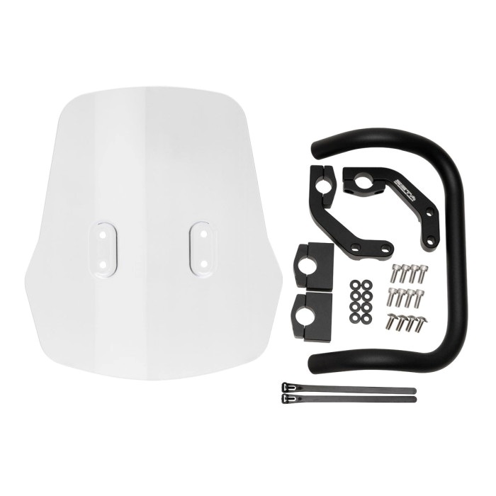 スクリーンは耐久性と強度に優れるポリカーボネート製、マウントバーは高強度アルミ合金を採用。