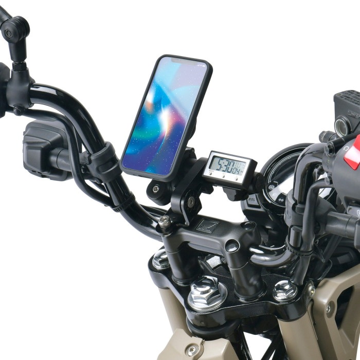 マウントバーを前後左右に調節できることにより、スマートフォンをライダーの理想の位置に固定可能。