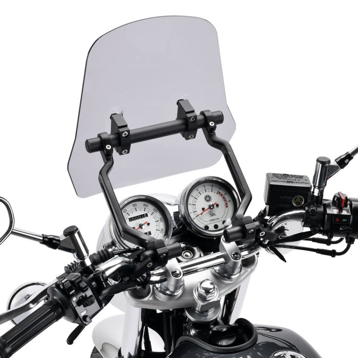 あらゆるハンドルバーにボルトオン装着が可能なウィンドシールド。