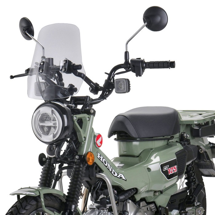 ハンドルバーに専用アダプターを装着し、アームを取付ける。モンキー125等の幅の狭いハンドルバーから、オフロード用の幅の広いハンドルバーまで対応。好みに合わせて上下反転可能なスタンダードスクリーンを標準装備したスタンダードスクリーンタイプと、単眼丸目ライトに合わせた設計のショートスクリーンを標準装備したショートスクリーンタイプをラインナップ。
