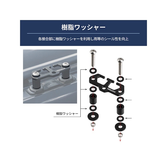 ※フックプレート、アルミスペーサーはアルマイト処理のため、