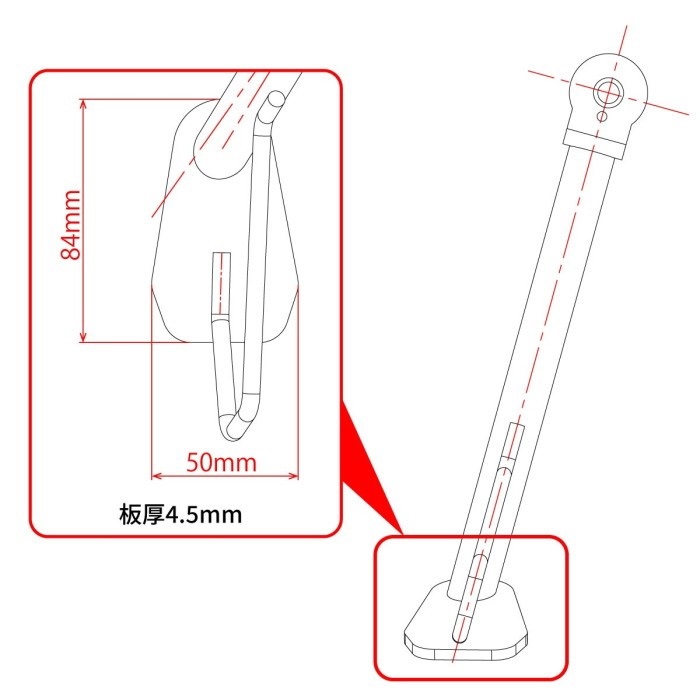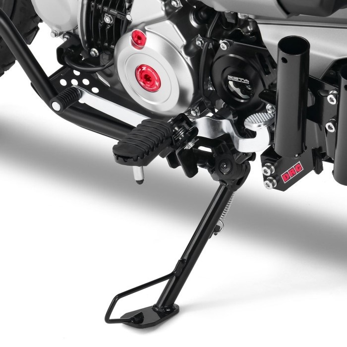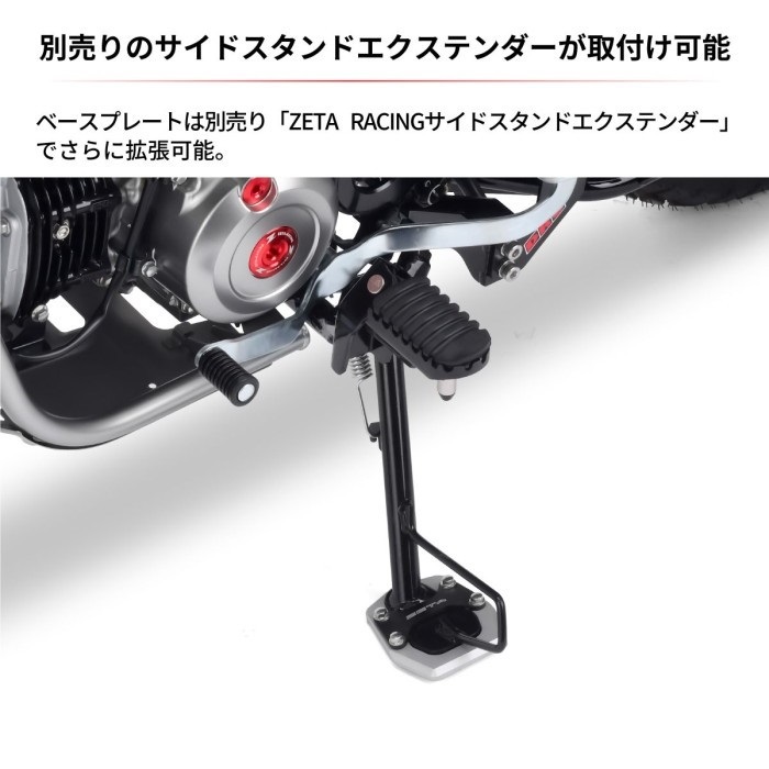 サイドスタンドの全長を適正化し、停車時の転倒リスクを軽減。