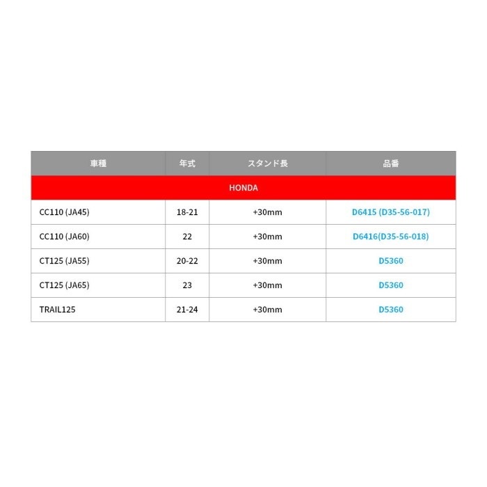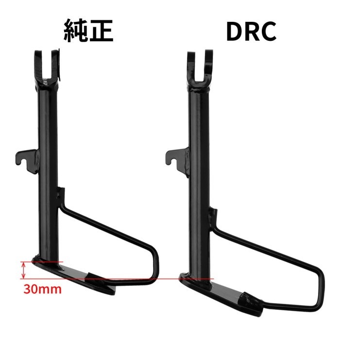 重い荷物を積んだ状態でも、安定感が増すように長さを30mm延長したロングサイドスタンド。