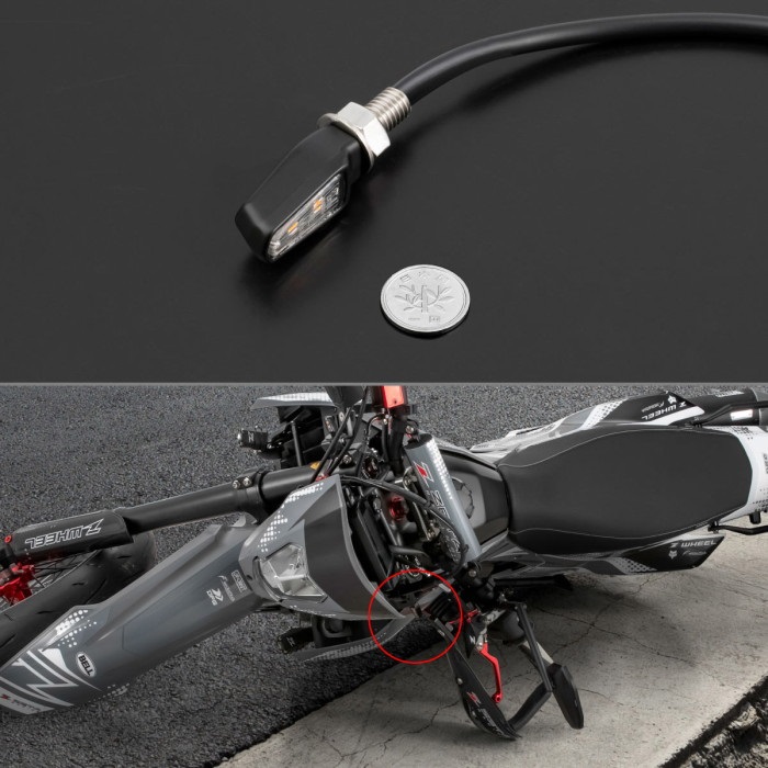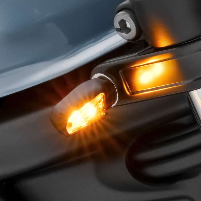 スポーツバイクにフィットする、汎用性の高いシンプルな小型LEDウインカー。