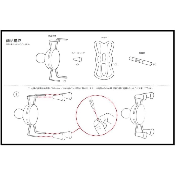 ※装着されるスマートフォンやカメラ等は脱落防止のためストラップ等で固定してください。