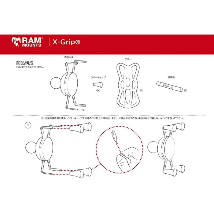 ラムマウントを代表する汎用スマホホルダー「Xグリップ」のSサイズをオートバイのハンドルなどへ取り付けることができるマウントセット。取り付けに必要な工具が付属し、特許取得のボールマウントシステムで自由自在に角度調整することができます。