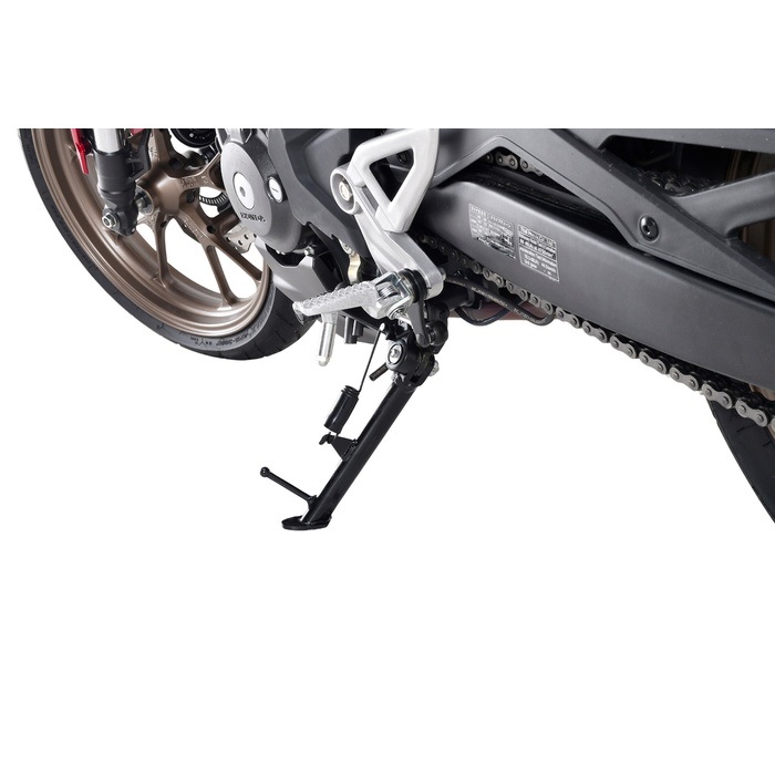 純正サイドスタンドのままローダウンKITを装着した場合、車体と地面との距離に対してサイドスタンドが長すぎる状態になり、駐車時の車体の傾きは純正状態と比べて起き気味になってしまいます。それを適正な傾きに補正するのが、ショートサイドスタンドです。