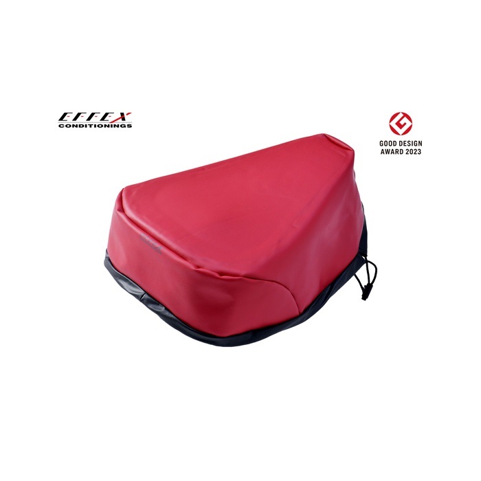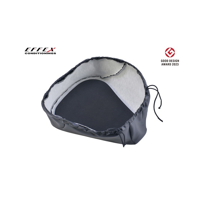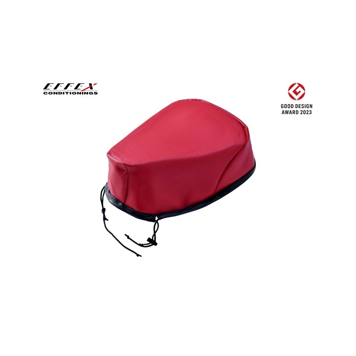 紐とコードストッパーで固定するシートカバータイプのゲルザブです。サイズ感に汎用性を持たせている為、シート形状により装着不可となる場合やシワ・たるみが発生する場合があります。