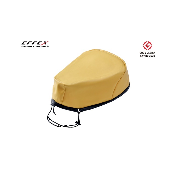 紐とコードストッパーで固定するシートカバータイプのゲルザブです。サイズ感に汎用性を持たせている為、シート形状により装着不可となる場合やシワ・たるみが発生する場合があります。