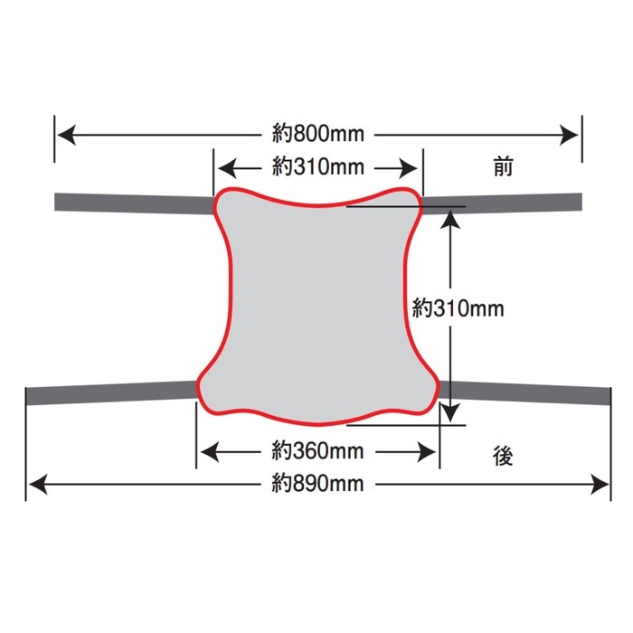 備考:取り付けベルトの長さ目安(片側):約25cm(前側:約24.5cm、後側:約26.5cm)、本体寸法を含む胴周り長さは、前側:約79cm、後側:約88cm