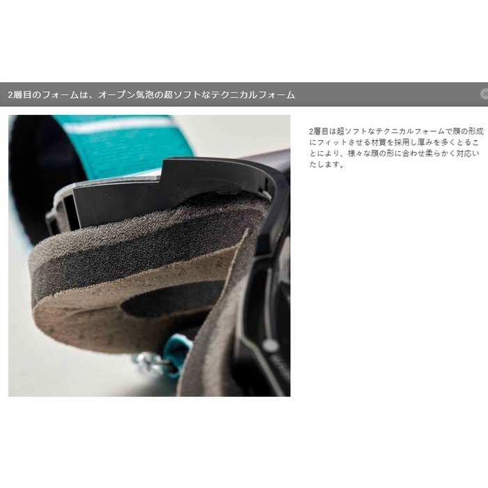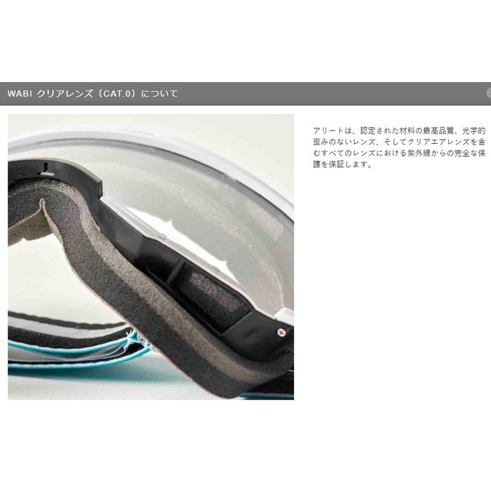 備考:レンズ LexanR クリア、CE レンズ Cat.0/光学歪みなし/防曇処理/耐スクラッチトリートメント/紫外線完全保護換気システム AVS Ariete 換気システム/フロントエアインテーク/オープンフィルター3 層フェイスフォーム 1 層目は独立気泡のテクニカルフォーム/2 層目はオープンセルの非常に柔らかいテクニカルフォーム/3 層目は低刺激性カーボンX 肌に触れる部分OTG 使用不可 (度付き眼鏡には不可)