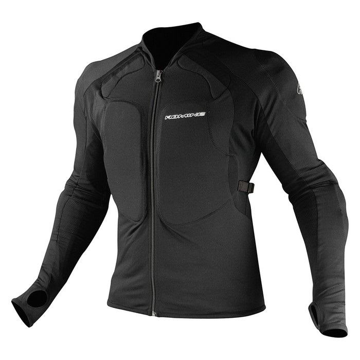 伸縮性と吸汗性に優れるクールマックスを使用したインナーシャツの中に肩・肘・胸・脊椎にプロテクターを内蔵したセーフティジャケットインナーとも言えるプロテクションウエアです。