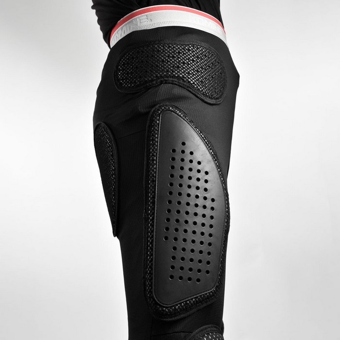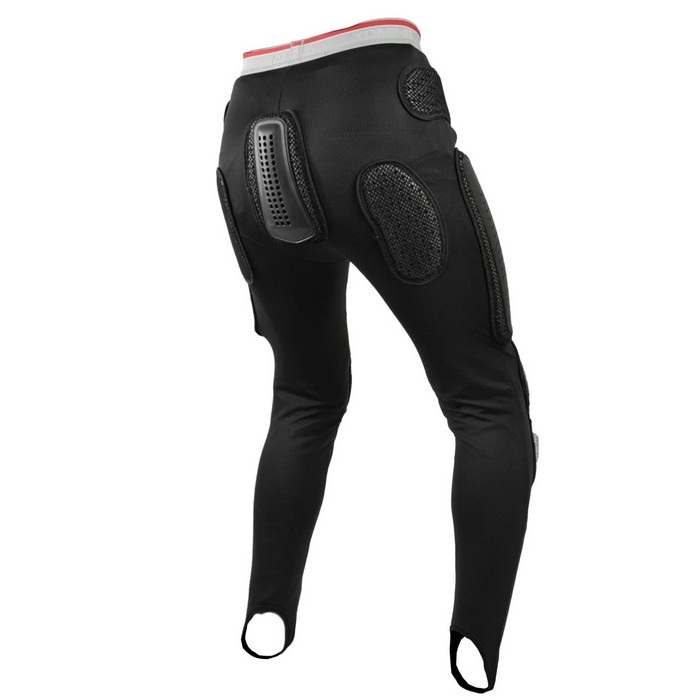 ハードプラスチックガードを尾骨・大腿部に配置し、膝にはCE規格のプロテクターを配置したプロフェッショナルモデル。