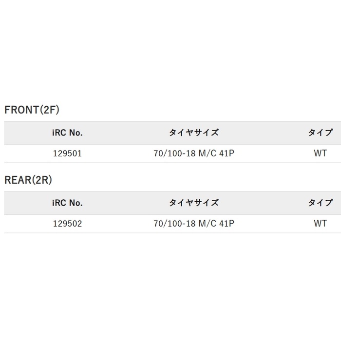 ブランドメーカー名:iRCアイアールシー 129501