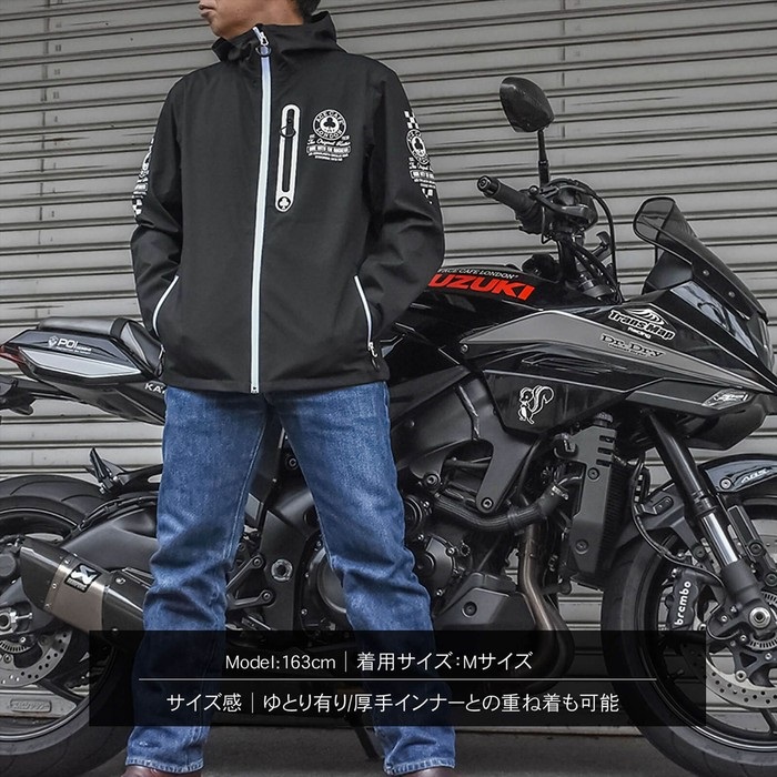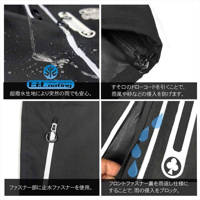 表地:ポリエステル(超撥水Ei コーティング仕様)+ 防風フィルム( ポリエステルナイロン) + シームテープ