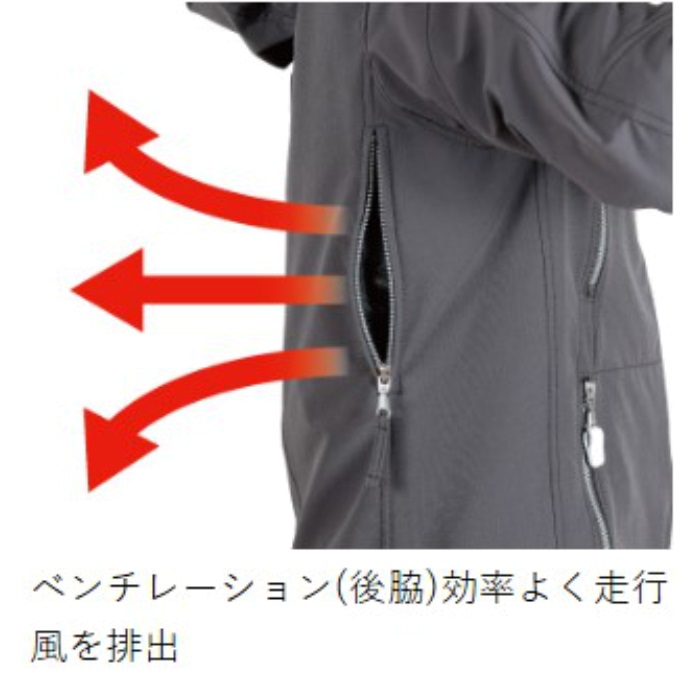 ◆ベンチレーション装備で幅広い季節に対応(胸、腰、袖、後脇)