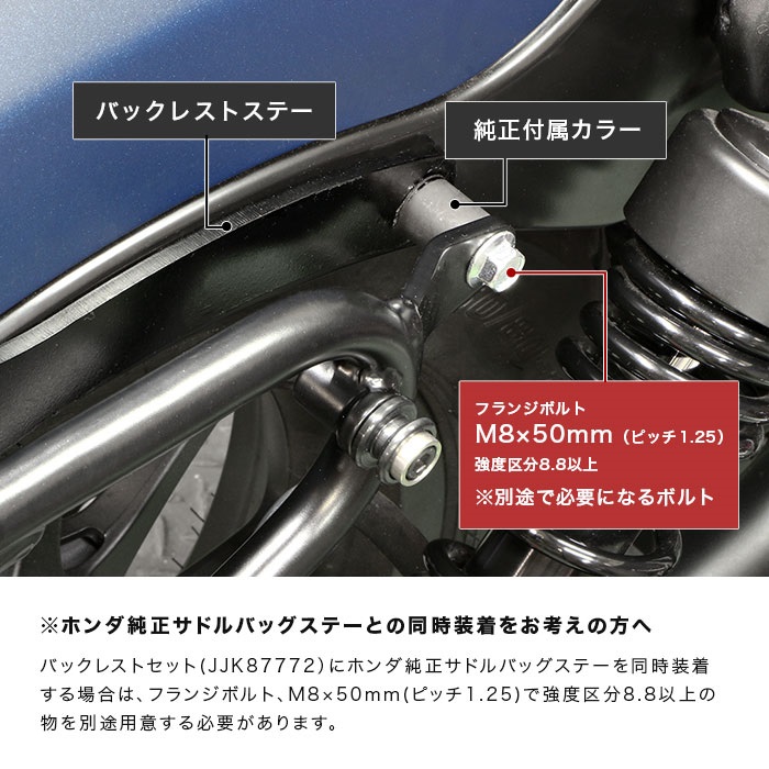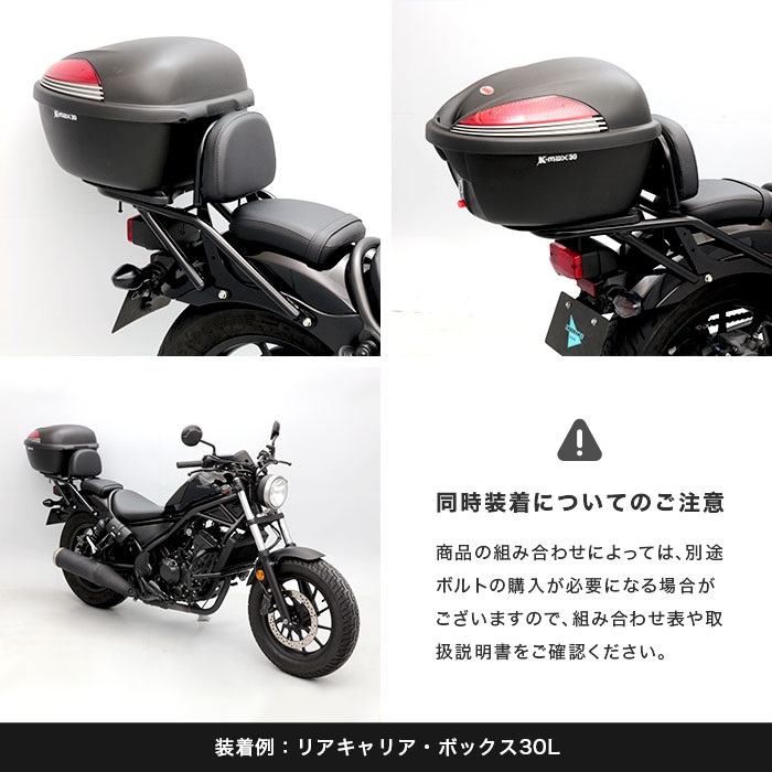 ●※1 当社製のリアキャリア、バックレストセット、サイドバックサポートの3商品の同時装着が可能ですが、組み合わせに関しての注意事項などに関して必ず取り扱い説明書や組み合わせ表でご確認の上、取付を行ってください。