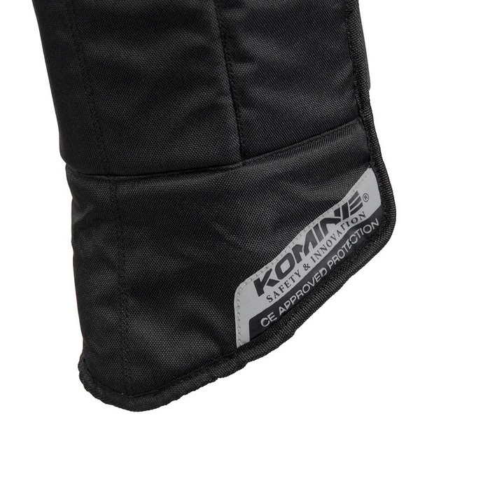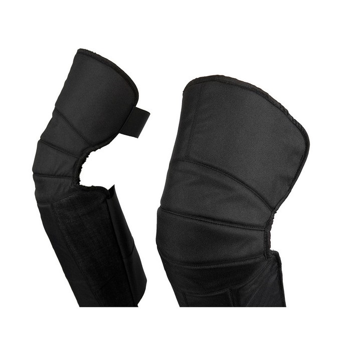 防風性に優れる表地と暖かいボア裏地にCE規格ハード膝プロテクターを内蔵(着脱可能)。