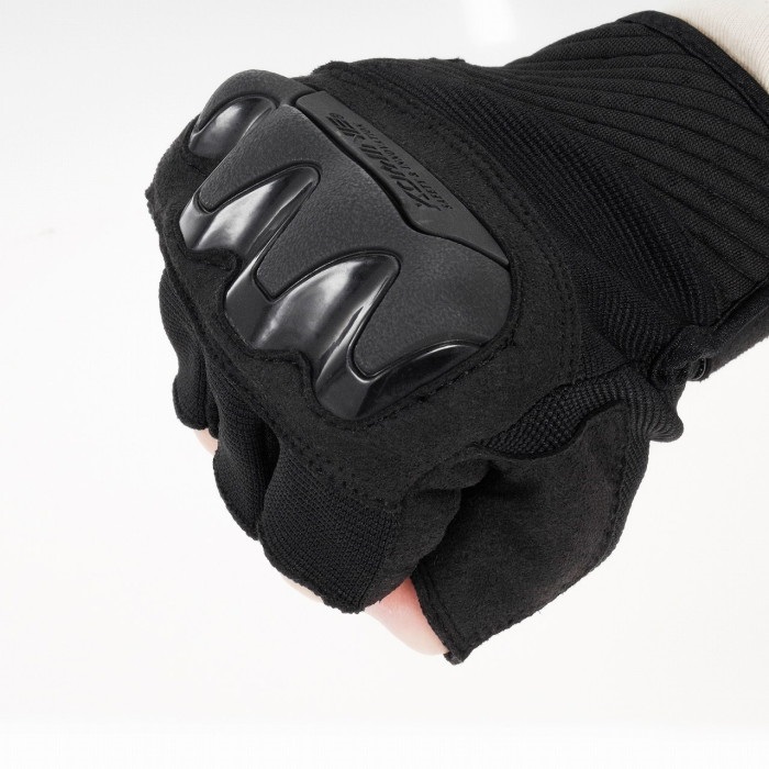 握りやすいラバーナックルプロテクターを装備した、夏の快適性と操作性を重視したフィンガーレスグローブ。