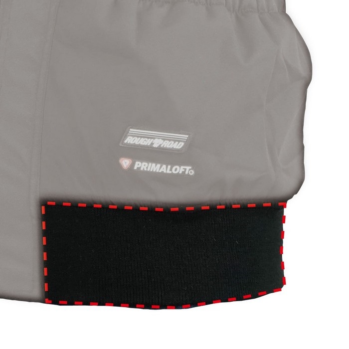 裾部は隙間風の侵入を防止する、ジャージを装備。115cmまで対応のフリーアジャスト仕様で重ね着の上からでもしっかり保温出来ます。