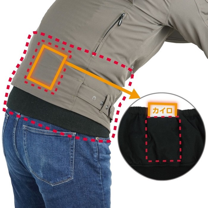 さらに腰部内側に装備されたカイロポケットにより要所を集中的に温めることも可能。