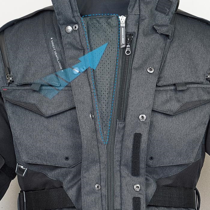 防水・防風・透湿性等に優れた素材を採用、すべてのテクノロジーを投入した一着です。 様々な状況下で安定したコンディションをキープし、ショートトリップからロングツーリング、そしてハイスピード・ライディングと多様なステージまで幅広く対応。また、防寒対策として着脱式インナージャケットを装備。酷暑の夏に対応できるベンチレーション機能は、長年培ったノウハウを惜しみなく投入しました、胸部、フロントVベント、アーム部からの外気のエアインテークを大型バックベンチレーションパネルより効率的に排気し、驚くほど効果的に衣服内環境を最適な環境に保ちます。