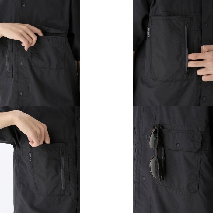 速乾性の素材を採用し、さらっと羽織れるAREA241-DWR WORK SS SHIRTS 。ワークシャツとしての用途を考え、適度な強度のナイロン生地を採用しています。右胸にはスマートフォンなども収納できるファスナー付きポケットとオープンポケットが一つになった2WAYポケット、左胸にはペンやサングラスなどの収納にも便利なスリット入りポケットを配置しています。<br /><br /><br />■Fabric■<br /><身生地>NY STUNNER DWR(ナイロン100%)<br /><背裏メッシュ部分>ポリエステル100%<br /><br />■Function■<br />ファスナー付きポケットとオープンポケットが一つになった2WAYポケット/スナップボタンで留められる左胸ポケットはペンやサングラスなどをかけらるスリット入り/背面ベンチレーション<br /><br />■原産国■<br />中国<br /><br />※画像には他のカラーが含まれています。
