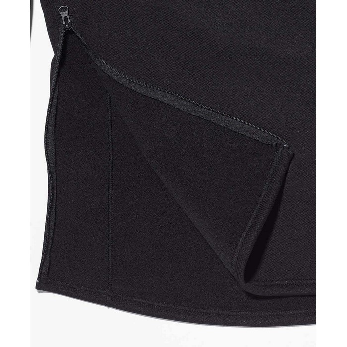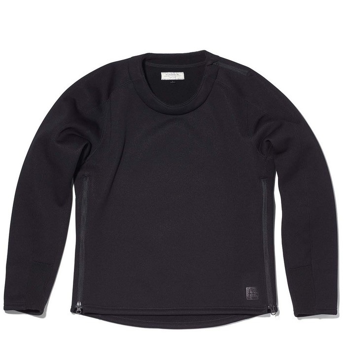 光沢を抑えた独特な風合いと黒で纏められた転写プリントロゴなどシックな印象に一新。新たに加えられたプルオーバータイプのラインナップはセーターのようにコーディネートと合わせやすく、着脱性を考慮した両脇と襟元のファスナーはデザインとしても目新しいアクセントになっている。