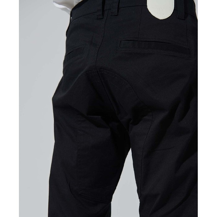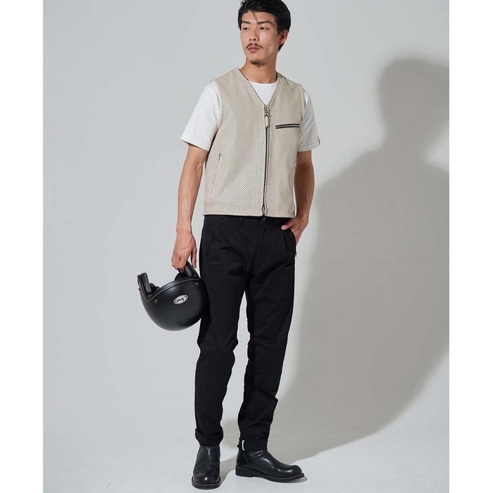 少々ゆとりのある腰回りからテーパードされたカッティングがリラックスした雰囲気とスマートなシルエットを両立させています。ナチュラルなスタイルで使い勝手が良く、ライディングシーンから普段使いまで様々なシーン活躍するアイテムです。