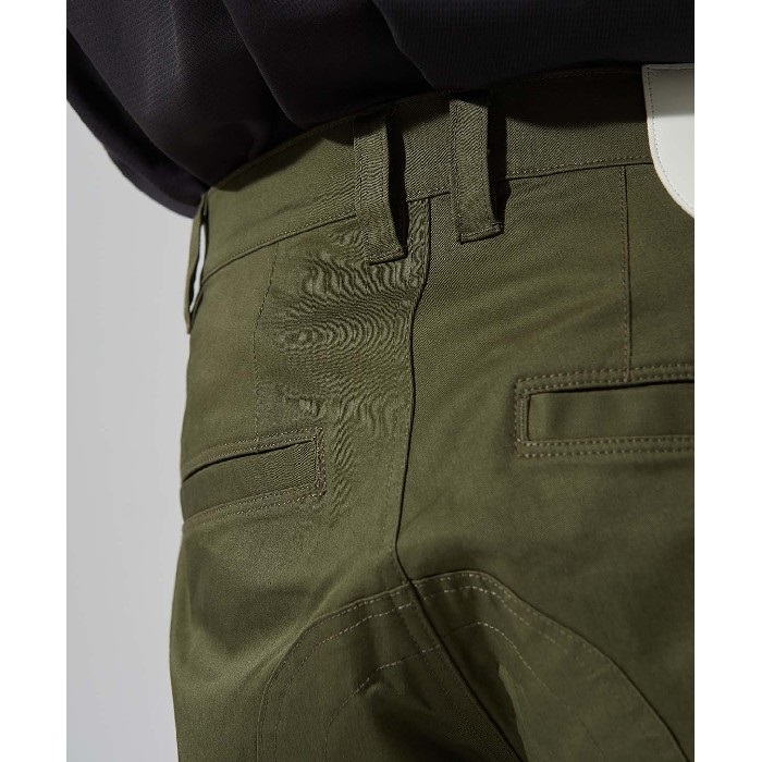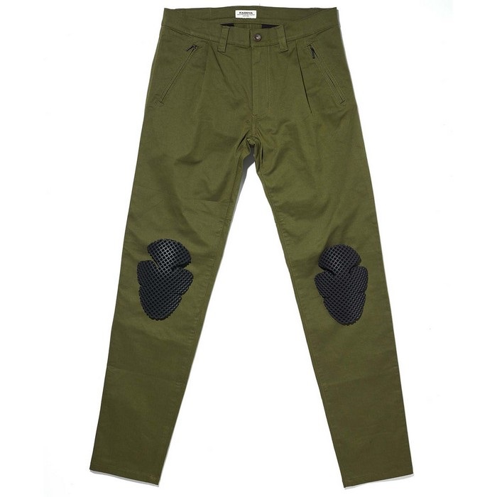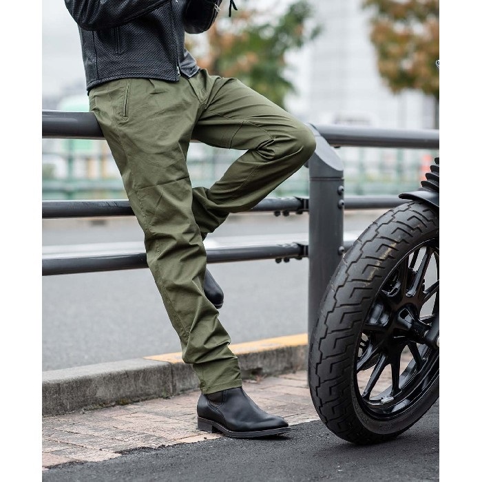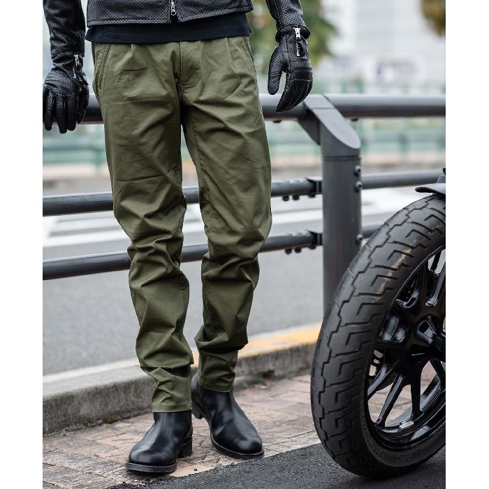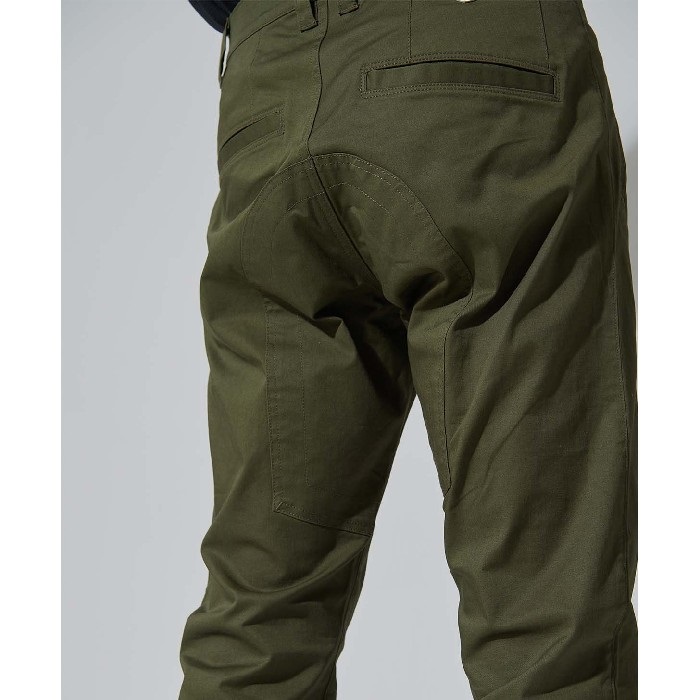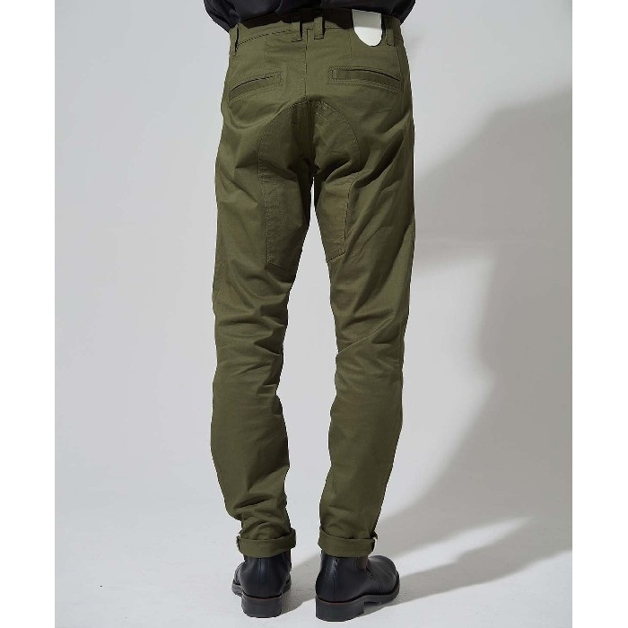 コーデュラ×コットンのストレッチ素材を使用することで耐久性と風合いを兼ね備えたライディングチノパンツです。