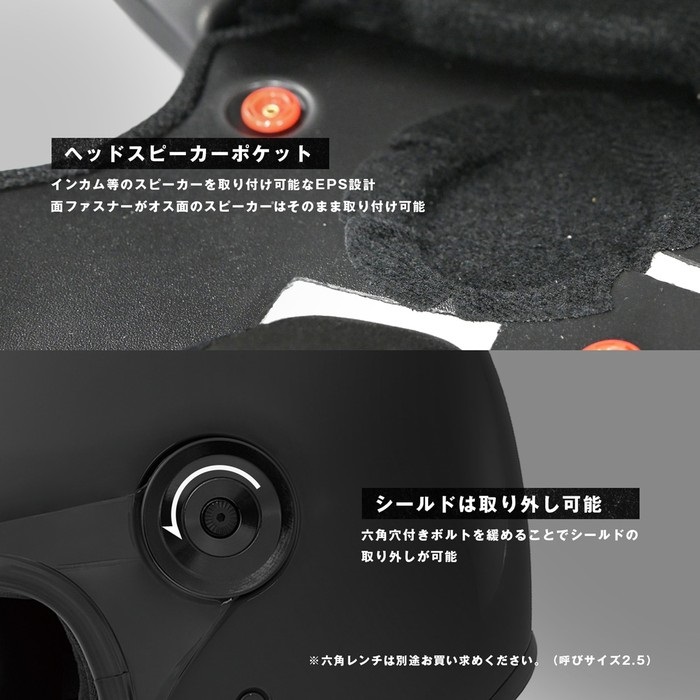 レトロな見た目ながらベンチレーション機能やコミネオリジナル構造の3Dメッシュライニングも採用。