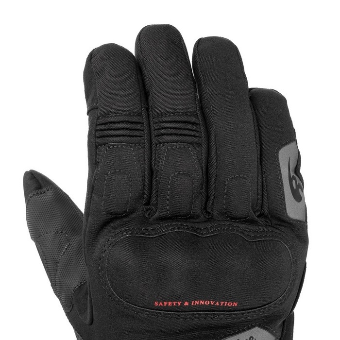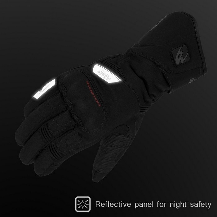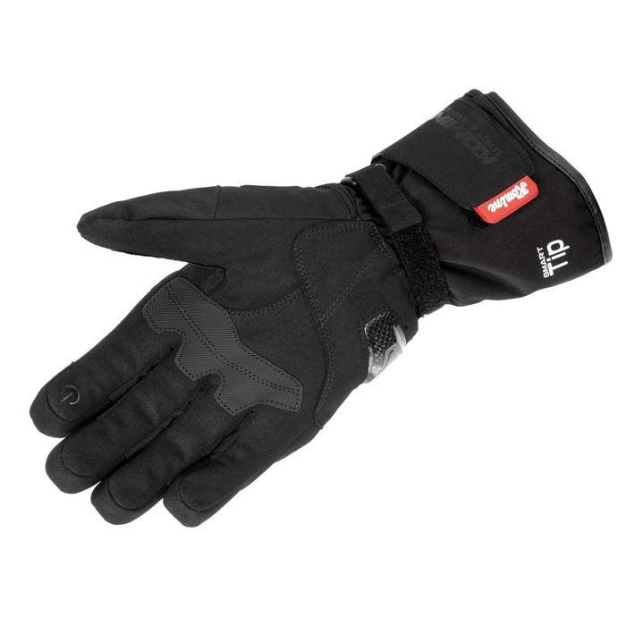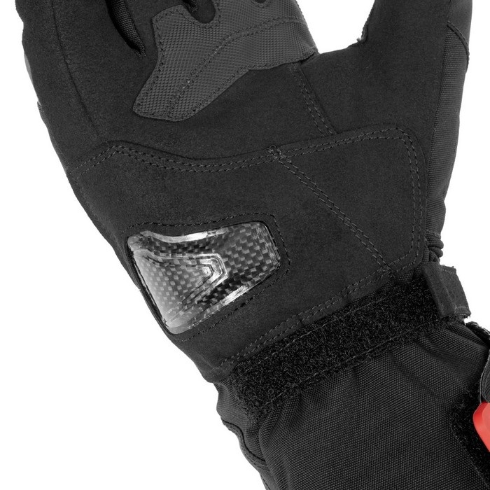 ナックルプロテクターとカーボンパームスライダーを装備。 立体パターン、高性能透湿防水フィルムHiPORAを採用し、電熱機能OFFでも ロングタイプのライディング用ウインターグローブとして使用可能。
