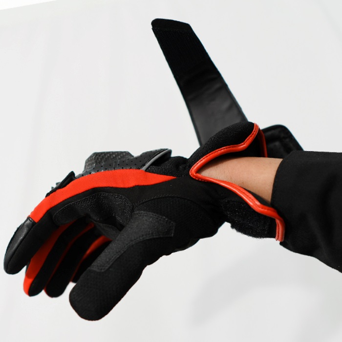 [甲側]ポリエステルメッシュ/PUレザー/カーボンナックルプロテクター/リフレクター