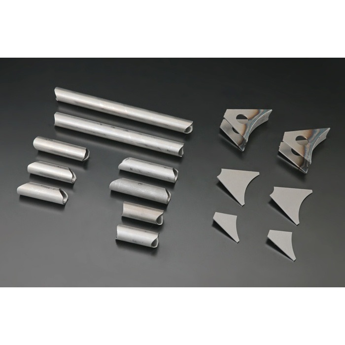 - 適度な剛性を与えるスチール系素材の補強用パイプとプレートのセット。