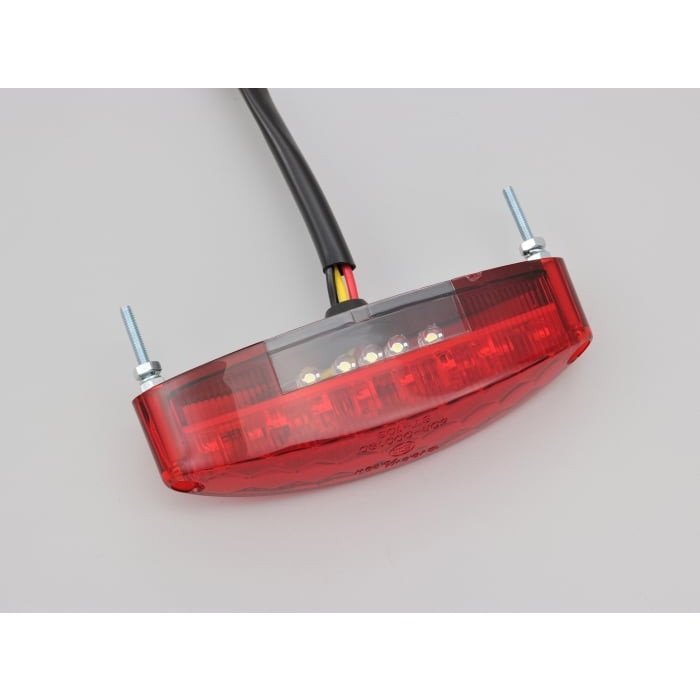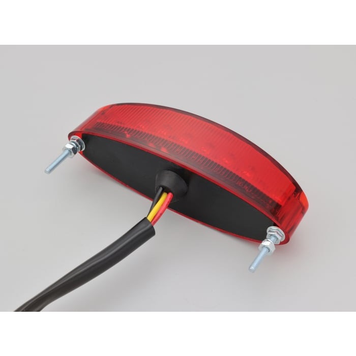 スリムな楕円形状でコンパクトサイズのLEDテールランプ。ナンバー照射灯を内蔵したユニバーサルタイプのスリムオーバルテールランプ(レッドレンズ)。