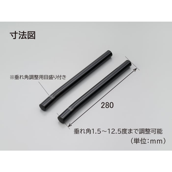 外観も美しいアルミ削り出しアルマイト仕上げ。垂れ角1.5~12.5度まで3次元に調整可能。また調整時に便利な目盛付き。ハンドルバー、エンド内径Ф16.5。デイトナ製アルミビレットバーエンド使用可能。