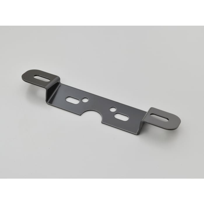 角度付き(+20°)のナンバーステー。スチール製黒塗装仕上げ。車体側取付ピッチ42mm~56mmに対応。