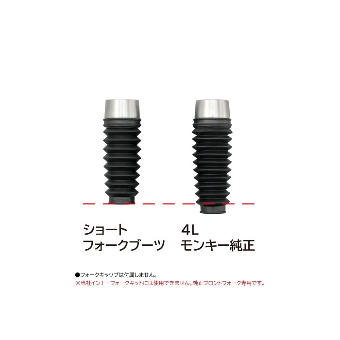 4Lモンキー、ダックス、シャリー純正フロントフォーク対応のショートフォークブーツ。純正比約10mmショート。